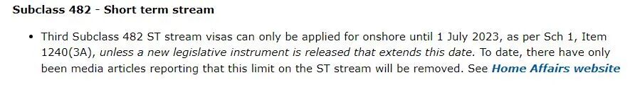 取消482签证第三张续签开始必须离境申请的要求,不再要求申请人必须离境申请。