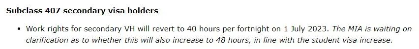 407子类签证从2023年7月1日起可以恢复每两周工作40小时。
