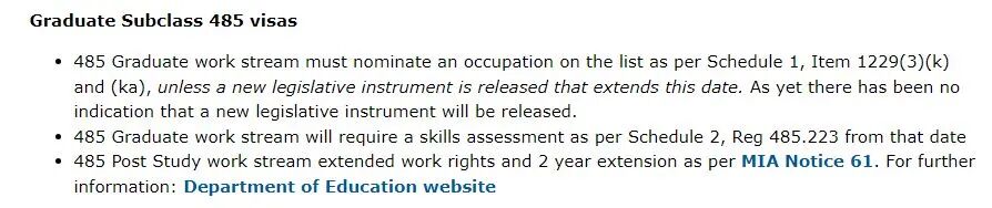 申请485 Graduate work stream 工签的申请人,需职业评估在中长期清单上。