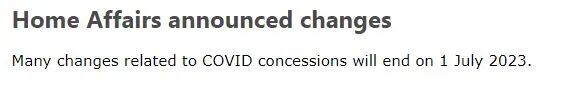 取消了允许8104工作假期签证持有者工作超过其签证条件允许范围的政策。若国际学生是在老年护理部门工作的,可以在2023年12月31日之前不受限制地工作。