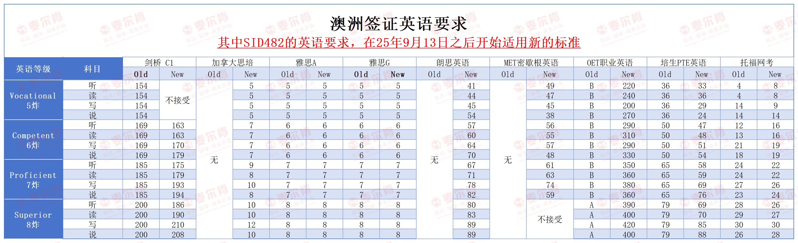 本次合集系统梳理了雇主担保、学生签证、485毕业生工作签证及实用英语类别的最新英语要求,希望能为您提供清晰的参考。
