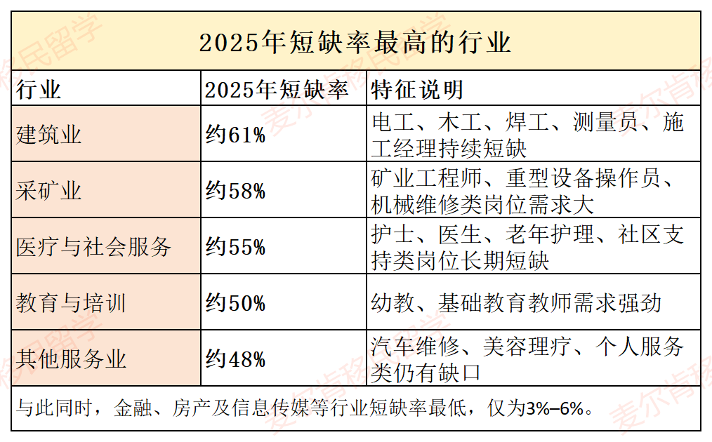 1. 结构性短缺仍然严重 —— 尤其在医疗、教育、建筑与技工领域;