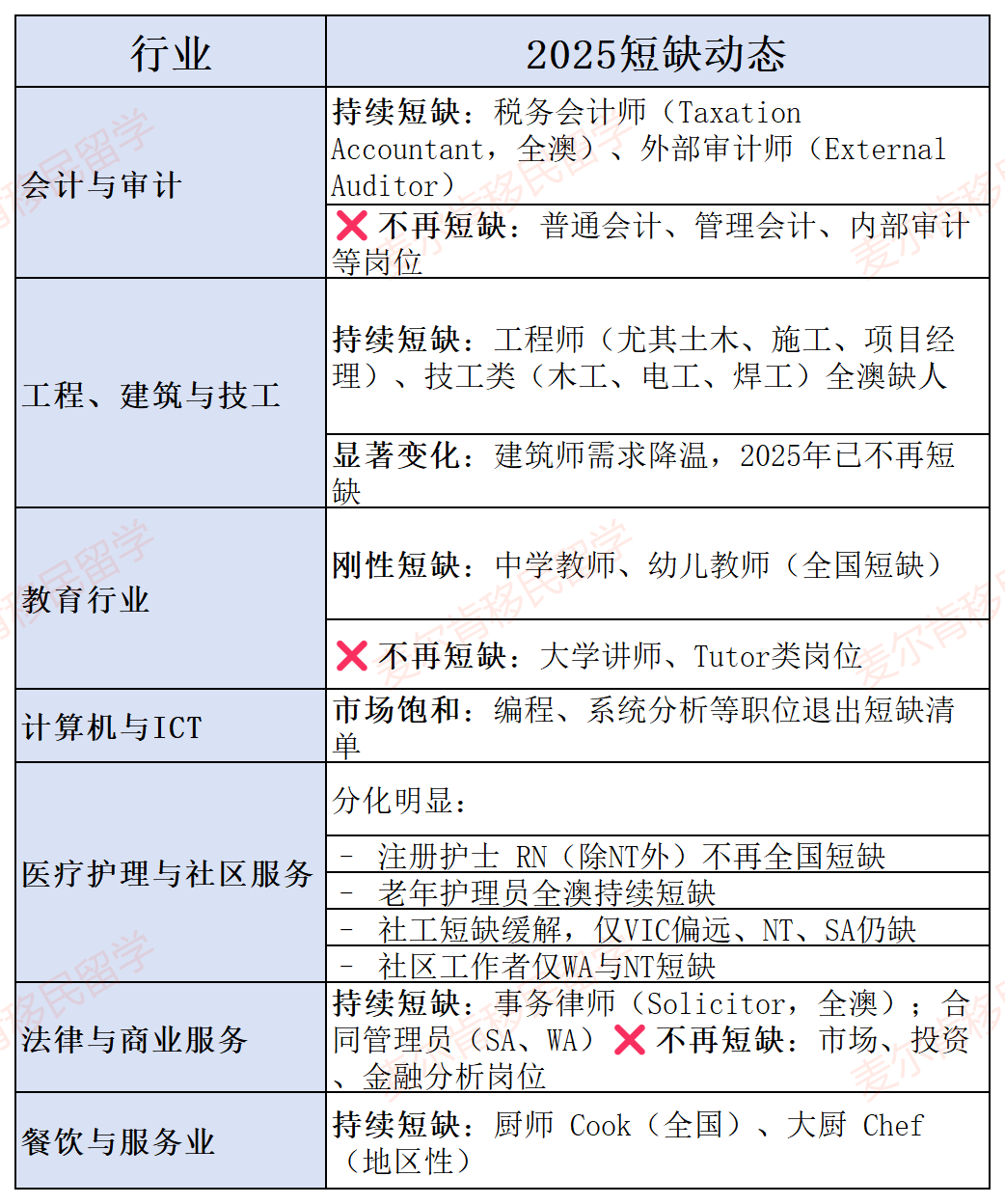 这份清单由政府官方根据全国劳动力市场数据、雇主反馈及ABS统计得出的年度职业需求权威分析。