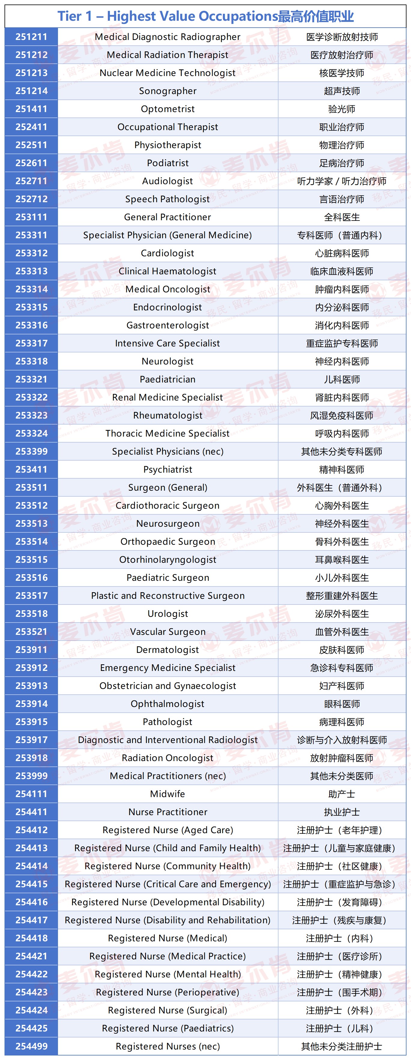 澳洲内政部将所有技术移民职业分为四个层级,有不同的配额上限设定比例。189 将按照职业的重要程度设定 Tiers(Tier 1、Tier 2、Tier 3),并动态调整。