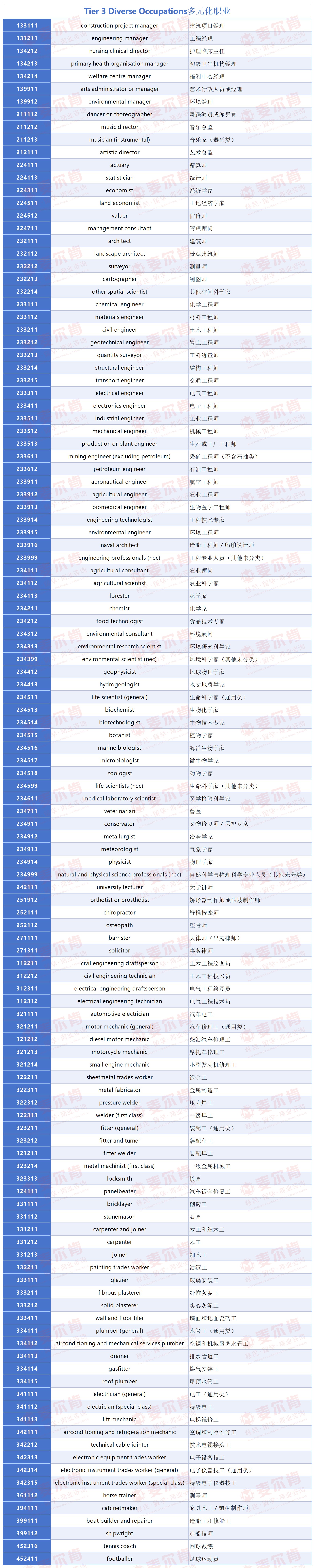 这些职业的配额上限将设定为该职业在澳洲现有从业人员总数的1%。这包括各类工程师(土木、电气、机械等)、建筑师、测绘师、科学家(农业、环境、生命科学等)、大学讲师、律师、各类技工(电工、木匠、水管工、汽车修理工等)。