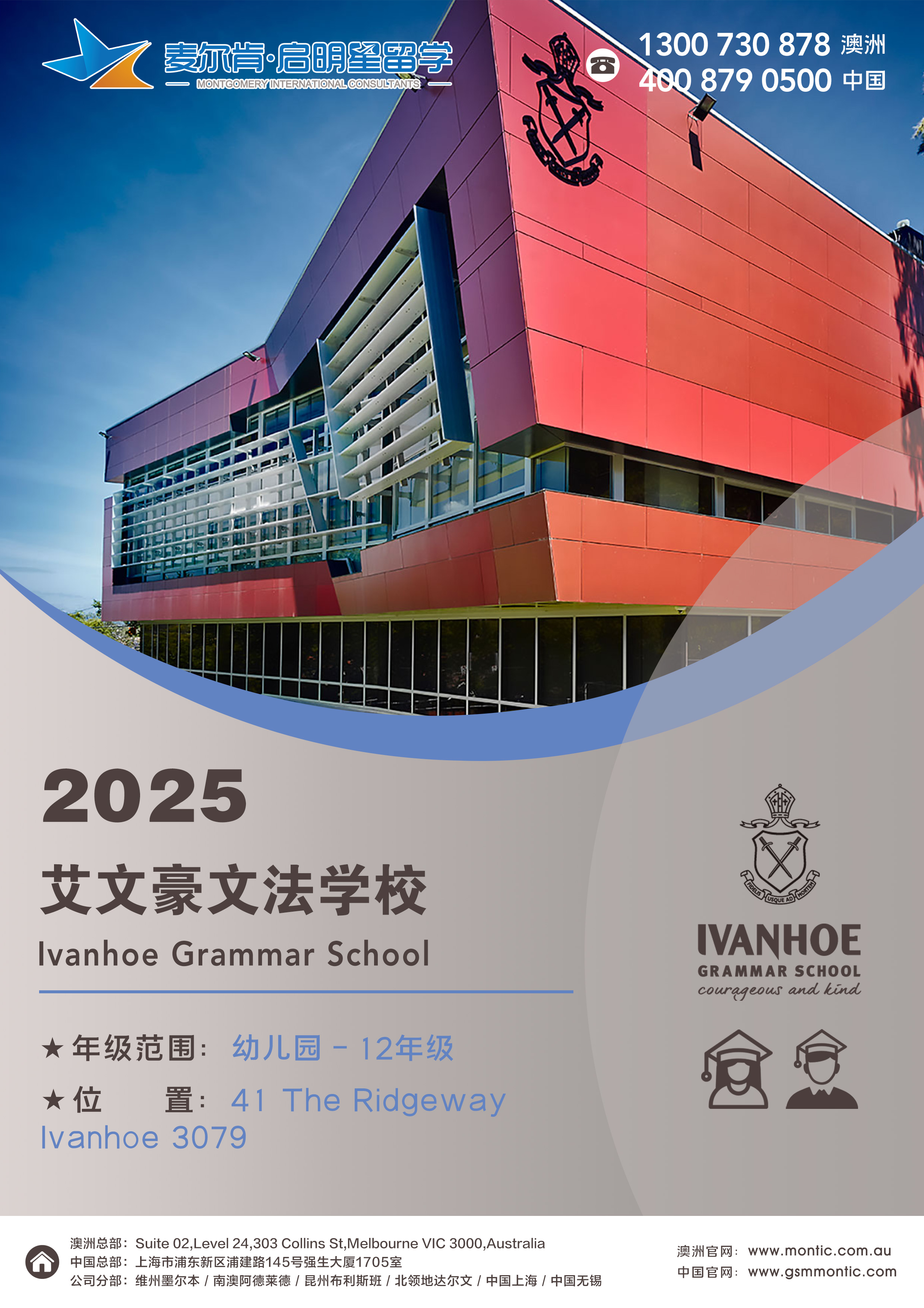 艾文豪文法学校成立于1915年,是澳大利亚一所备受欢迎的杰出私立学校。学校从20世纪40年代就开始招收海外学生,拥有完善的学生支持体系。学校旨在通过学术学习、创造力培养、体育运动、户外教育等多种体验,最大限度地挖掘每位学生的独特潜力。